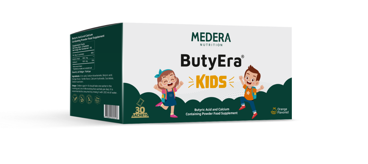 At Medera Nutrition, we understand that every child’s health journey is unique. That’s why we’ve developed ButyEra Kids to offer optimal support for your child’s digestive system. With our vegan butyrate, we ensure your child receives the best care for a healthy gut and overall well-being.